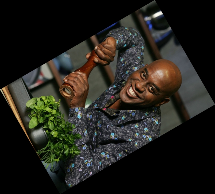 The video (Figure 15.4.1) demonstrates the full range of possible rotations, from 0 degrees to 360 degrees. Note that I made the video using iMovie, which scales still images to the same size as the video resolution. Therefore, although it appears in the video that rotations always have the same vertical height dimension, that is not the case. The sole purpose of this video is to show the angles at which rotation can occur, not to comment on the quality or size of the images produced at different rotations. For single images, the same quality comparisons can be observed in rotating the images as in scaling. Nearest neighbor performs the weakest among the three. One can clearly see the jagged edges of the stripes in Figure 15.1.2. In Figure 15.3.2, the pepper grinder and hands of Ainsley Harriott seem jagged as well. The leaves in the bowl seem blocky and rough. The border of the rotated image and the black background is also not smooth. This is because of multiple pixels getting mapped to from the output image to the input image. The transitions between pixel intensities are not created and the same pixels can appear more likely than not to be right next to each other, estimating the same point value. Bilinear and Gaussian definitely improve on this. The edges in the bilinear output appear smoother, but not as smooth as the Gaussian method. Comparing Figures 15.3.3 and 15.3.4 show that some small jagged edges such as in the base of the pepper grinder are smoothed out by the Gaussian sampling providing arguably a better output image.