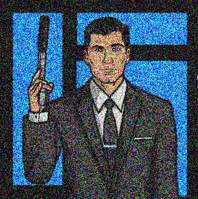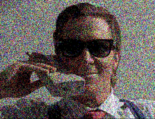 The random noise function asks for a noise value as input. Noise is assumed to be in the inclusive range of 0 to 1. The function itself loops through all pixel locations. For each color channel, a random number in the range of [-noise,noise] is generated and then multiplied by 255. This random value is equivalent to the amount of noise to be added given that the three color channels range in value from 0 to 255. The noise amount is added to the pixel values in each color channel, clamped to be in the range of [0,255] and converted to an unsigned char. The following results were generated using the function.