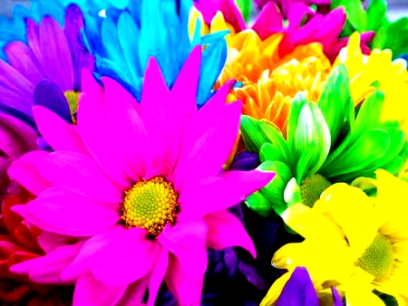 The saturation changes in the pictures with relation to the parameter input. As one can see in Figures 4.1.3, 4.2.3, and 4.3.3, the output image is identical to the input image when the saturation parameter is 1. When the saturation is between 0 and 1, the output image looks grayer and converging to the grayscale representation of the image. This can be observed in Figures 4.1.2, 4.2.2, and 4.3.3. Higher saturation results in a futher color distance between pixel values and their respective luminance. In Figure 4.1.4, Shrek seems to be more green and the sky becomes a much deeper blue. In Figure 4.2.4, the colors of the flowers become more vivid. Tints and shades of one color are saturated so much that they map to one color and lose some detail, as notably seen in the front fushia flower. In Figure 4.3.4, Van Gogh's beard appears to be more notably orange than the grayer representation in Figure 4.3.2. This same principles can be seen in the video, Figure 4.4.1. At the beginning of the video, the deviation from each pixel's luminance is scaled in a negative fashion, making colors appear to be opposite what they should be. The frame that is grayscale is when the saturation is at 0. Similar patterns discussed above can be observed as the saturation level increases away from 0 towards 4.