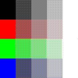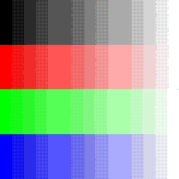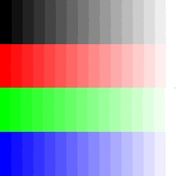 The above images clearly show grayscale representations of the input images. Note that the grayscale function has different weights for the three color channels. Therefore, a pure blue, a pure green, and a pure red will map to three distinct luminance intensities. Because of the weights, blue will appear darker than red and red will appear darker than green. This can be observed in Figures 3.2.1 and 3.2.2. Also note that the function to convert to grayscale is a many to one mapping. This means that there are many possible RGB values that generate the same luminance value. In Figure 3.3.1, one can clearly distinguish a circle with the letter A in it, both being two different colors ((130,100,200) and (185,100,50), respectively). However, these RGB values both have the same grayscale luminance of 120. The resulting grayscale image makes it impossible to distinguish the letter from the circle, as evident by Figure 3.3.2. These are called isoluminatic colors and continue to be a challenge in converting color images to grayscale.