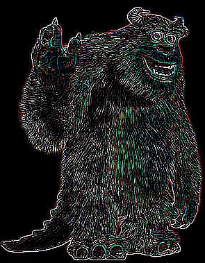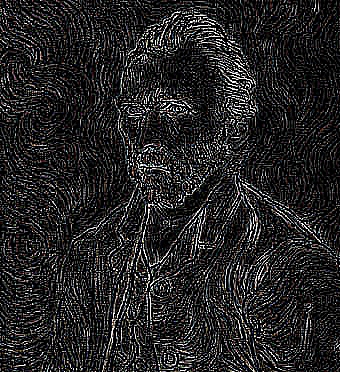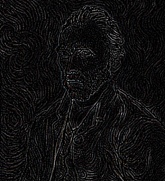 The function produced edge detections for the images. In Figure 11.1.2, edges such as the monster's individual hairs and other body features were picked up as edges due to their apparent gradient. In Figure 11.2.2, the portait had strong edges at the brushstrokes, as well as other places perhaps influenced by image compression. In Figure 11.3.2, the input was blurred before performing edge detection. The resulting edges became softer, making the apparent gradient to be smaller and less noticeable. Harder edges, like between Van Gogh's hair and skin are highlighted and noticed more than softer edges such as the brushstrokes within his face. The edge detection of the blurred portrait contains fewer perceived edges due to the smoothing of the gradient.