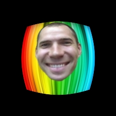 The below image is my submission to the art contest. First, I used the rainbow gradient picture and cropped it to 240x240. I then made a composite picture overlaying Professor Lawrence's head onto the background, using a matte I made in Gimp. I blurred the result and applied the barrel distortion filter to it. The intermediary images as well as input images for this piece of art can be found in the tcc4dr_HTML/Art Temporary Files directory.