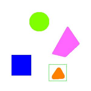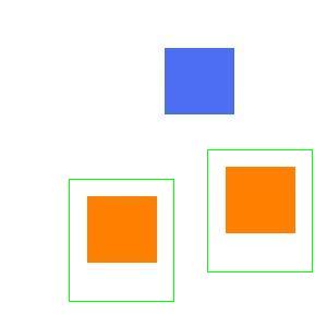 To do a sanity check on my detection program, I created various templates and target images. I hardcoded in the filenames of the templates. The first template I created was an off-centered black square. For the target image, I copied said square onto a large white background and translated it. As the pictures indicated, the pixel where the lowest SSD was at the center at the moved template on the target image. The same results were seen with a similar template of an off centered orange square. The target image had two orange squares and a blue square. The program was able to detect the orange squares and did not detect the blue square. This proved that the color of the shapes being detected mattered. In addition, this proved that multiple objects could be detected in a target image if they are in separate "neighborhoods." My final test template was an orange triangle. My target image was various colored shapes including the orange triangle on a white background. The program was able to detect the orange triangle in the target image. This showed that the program could detect objects with various other objects in the background. Once I achieved these results, I went on try to detect faces in the unaligned, uncropped photos in the face database.