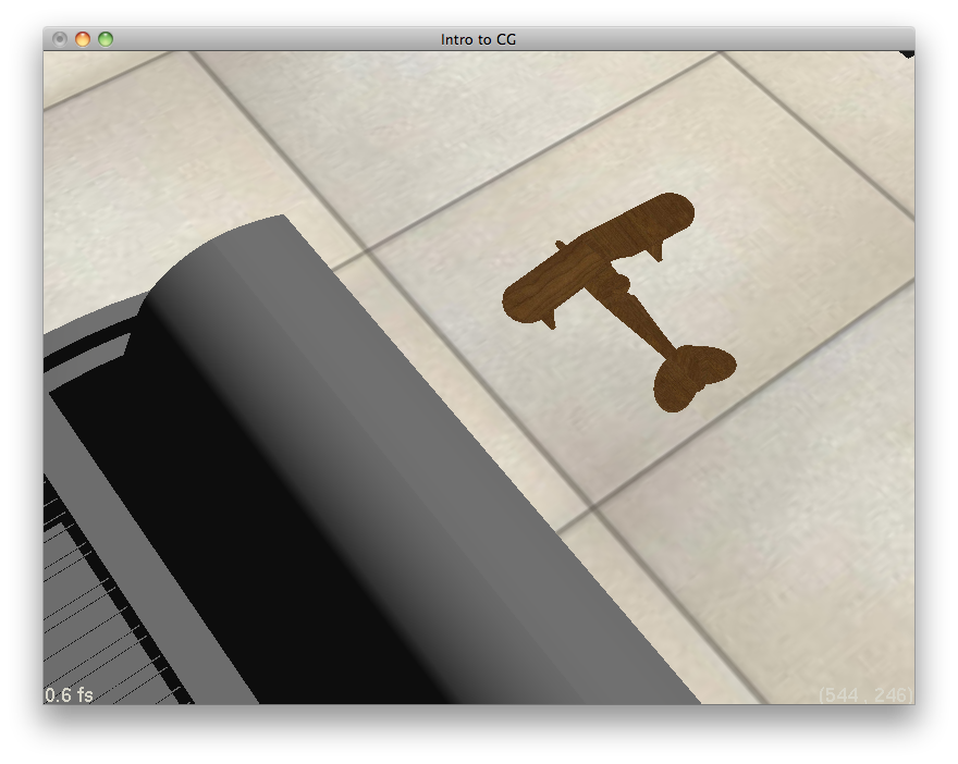 Figure 13.4 Video of a toy plane converted from an .obj file to a .ray file. The scene rendered is test_toyplane.ray. Click here to view the video.