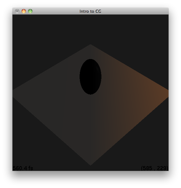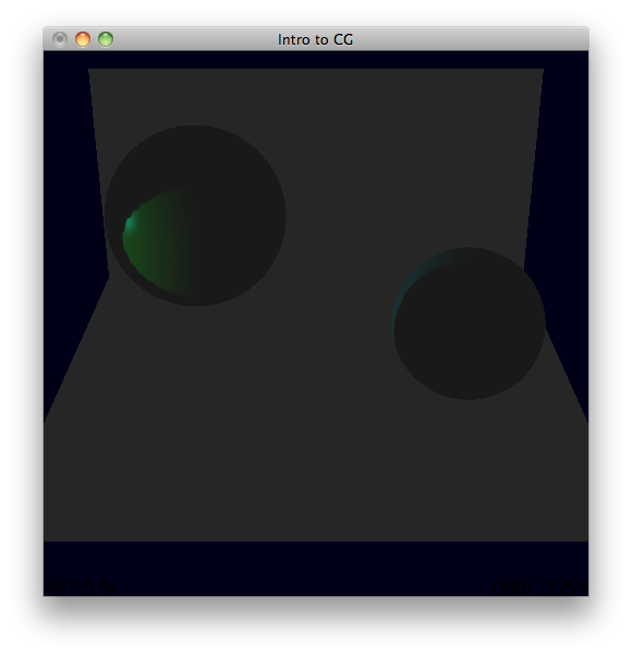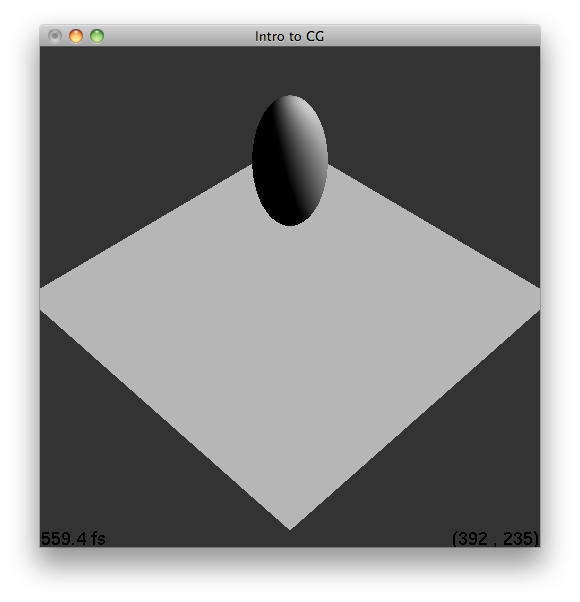 For a point and spot light, the position is the homogenous coordinates of the actual light position. Additional parameters like color, attenuation, and angle/fall off can be specified as four-tuples using glLightfv. Because OpenGL can be thought of as a state program, in order to use a light, you must enable it. In order to have lighting, you must enable lighting as well. This is done after each light is set up. The following were rendered with these commands: