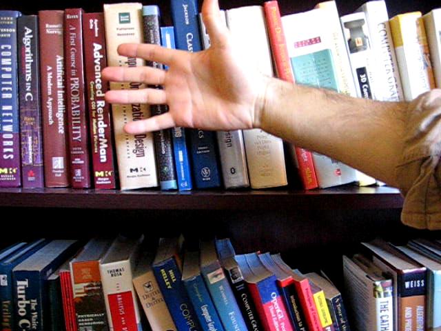 The video of the book has a static background of a bookcase. Within a couple of frames, a hand comes down from the top right of the frame and moves slowly down holding a book with a cactus on it. As seen in my videos, I was able to detect the optical flow across this video. The motion vectors were all near the hand and book and pointed in the direction of motion. This strongly indicates that the hand was moving with the book in the video with nothing else. In addition, the program picked up on the shadow of the hand and book, indicating its movement. Compared to the hand video, the book video did much better at displaying noteworthy motion vectors. The book moving in the video had many unique points on it - the picture of the cactus and text provided many unique points for the program to adequately detect translated motion. In my visualization, one can see how in almost every frame, the book is almost entirely covered in the correct motion vectors with no "bald" patches.