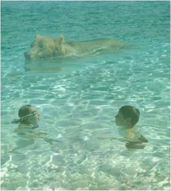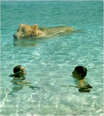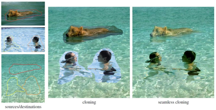 Figure 1.1 Seamless copying of Source (bear and children) into Destination (empty pool).